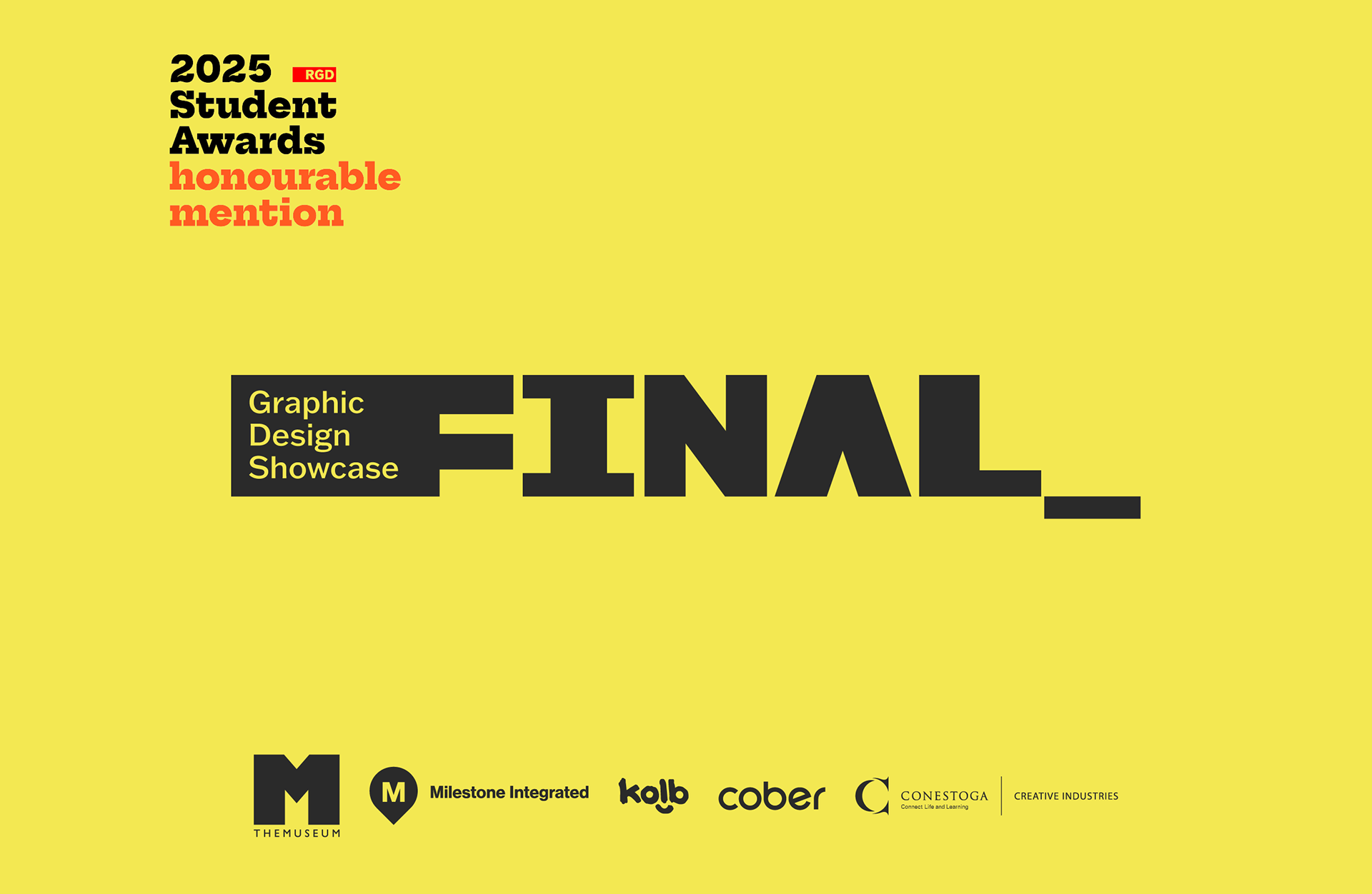 FINAL_ is a high-impact showcase built for Conestoga’s graduating Graphic Design class. We developed a loud, typographic identity rooted in chaos, deadlines, and the reality of creative work. Inspired by messy file names and last-minute pushes, the system embraces imperfection as a visual language.