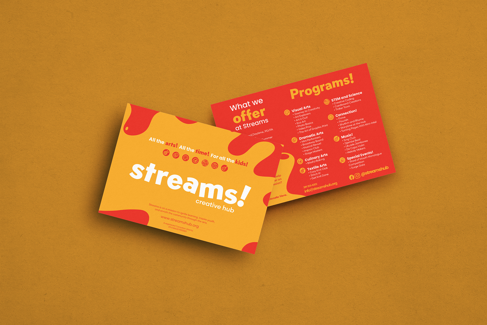 focused arts centre in Shelburne and North Dufferin County. The rebrand features a playful typeface, a bold colour palette, and graphic elements inspired by spilled paint to reflect creativity, energy, and